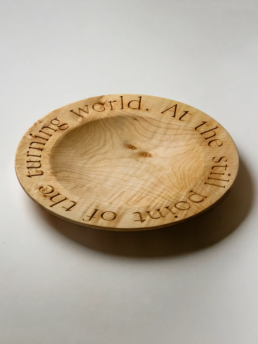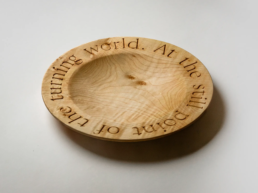 We’ve turned a small set of these bowls in sycamore, with carefully set text cut with a v-groove. These bowls look particularly nice near a window, where the light cast across them picks out the letters beautifully.